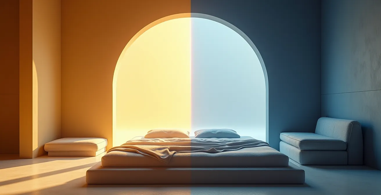 Entgegen der landläufigen Meinung ist nicht die Anzahl der geschlafenen Stunden der Schlüssel zu optimaler Gesundheit, sondern die strikte Regelmäßigkeit Ihres Schlaf-Wach-Rhythmus. Dieser Artikel enthüllt, warum die Synchronisation Ihrer inneren „Master-Uhr“ mit dem Tageslicht ein komplexes Orchester aus Hormonen und Stoffwechselprozessen dirigiert. Eine Störung dieses Timings, selbst nur am Wochenende, kann weitreichendere Folgen haben als eine Nacht mit zu wenig Schlaf.